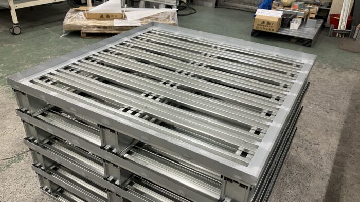 効果/経緯 危険物倉庫内で1100×1100サイズの樹脂パレットに一斗缶を16個積載し、PPバンドで固定していたが、パレット起因の火災リスク軽減のためライトパレットの問い合わせをいただく。 材質をスチールにすることでパレ[…..]