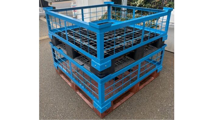 効果/経緯 樹脂パレットに載せていたワークがパレットから落ちてしまい、転倒防止用として鉄柵を取り付けた。 既存の樹脂パレットに取り付けられるようにビス止め方式を採用。また、当初はできなかったパレット段積みもできるように設[…..]